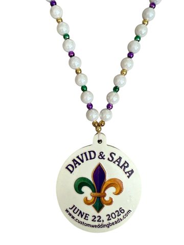 Add a festive and personalized touch to your big day with our machine-strung custom wedding beads. Perfect for receptions, welcome or favor bags, or themed celebrations, these beads can be customized with your wedding colors, names, dates, or special charms. A unique and joyful wedding keepsake, they bring a touch of Mardi Gras magic to your celebration of love.